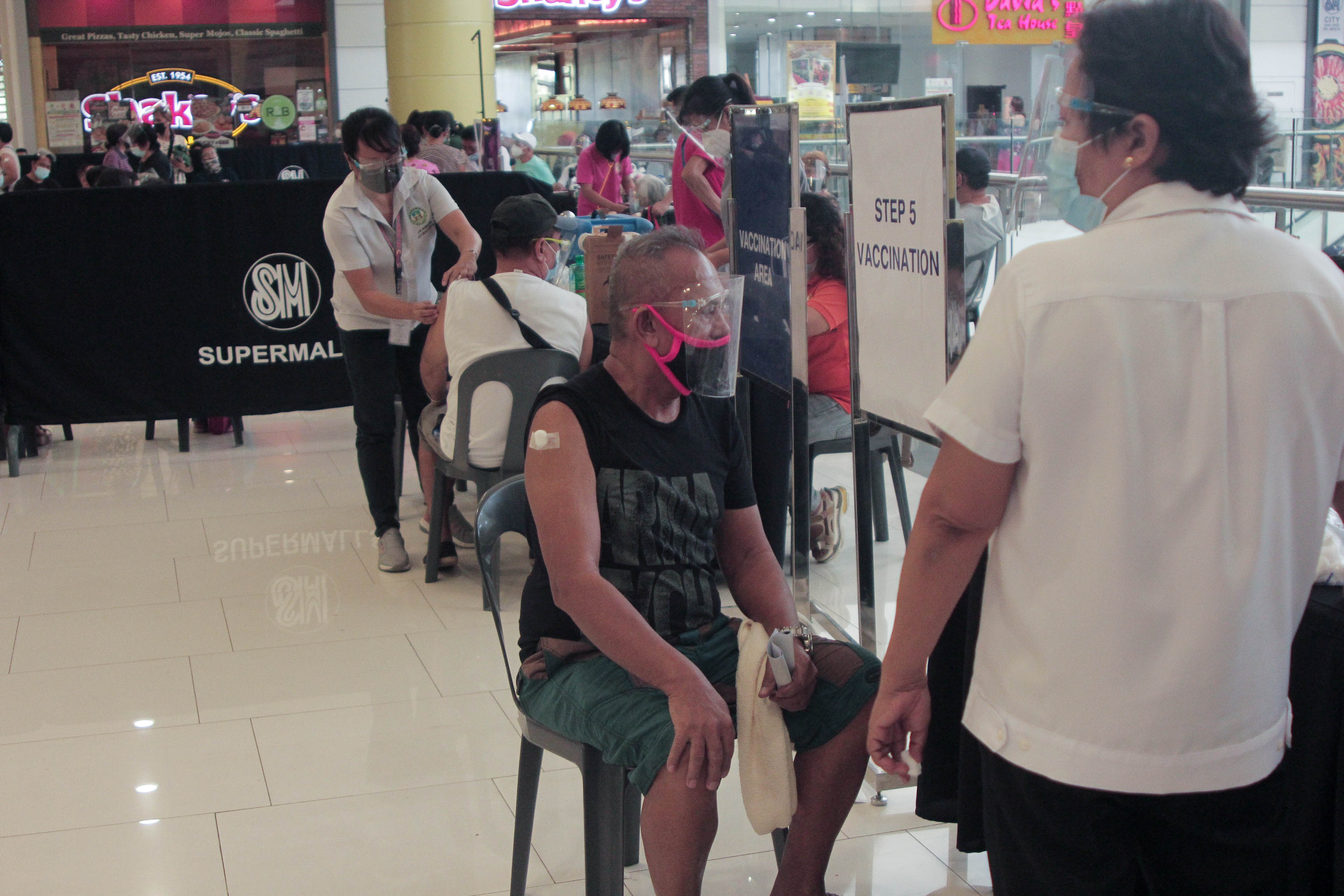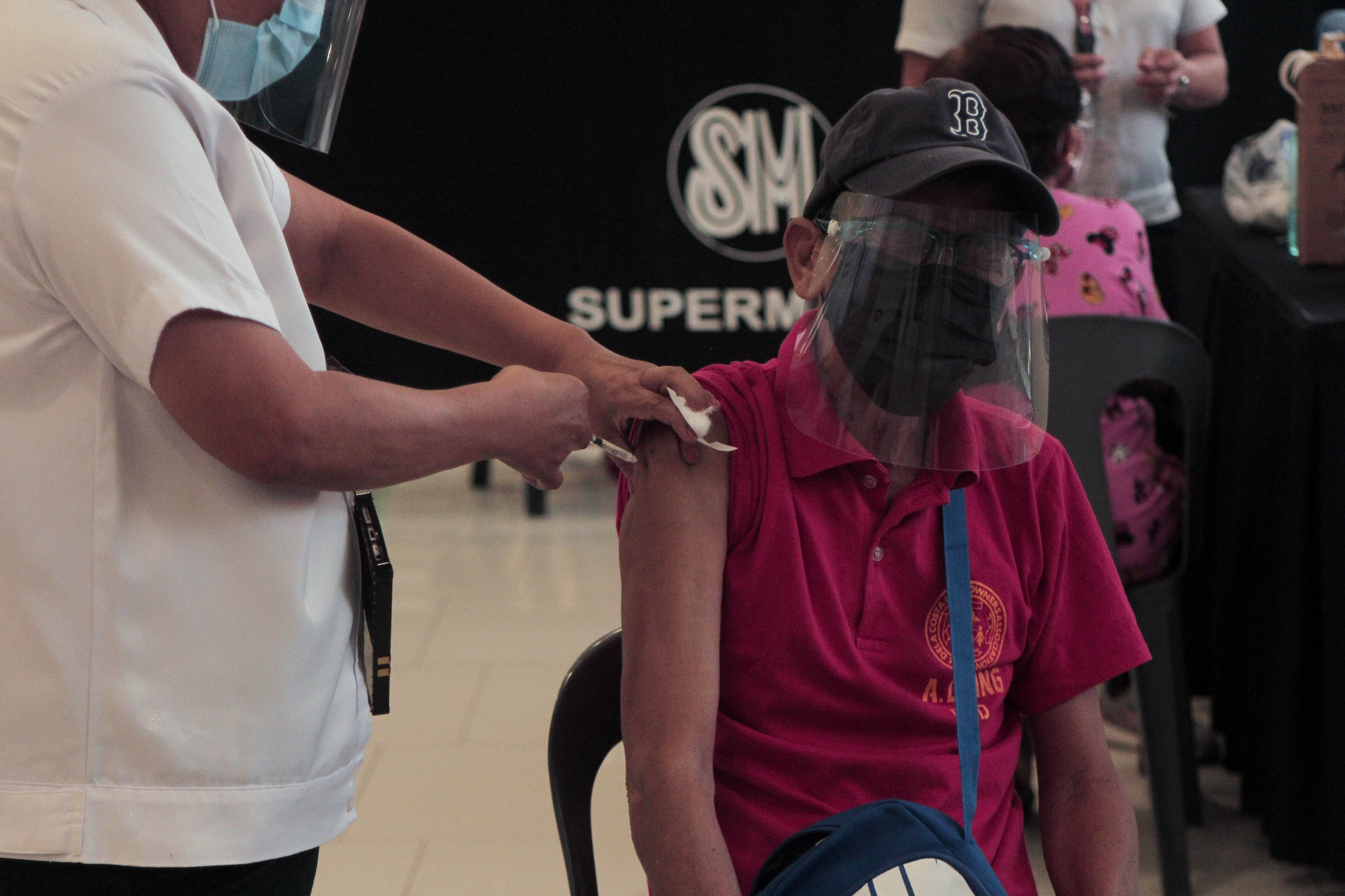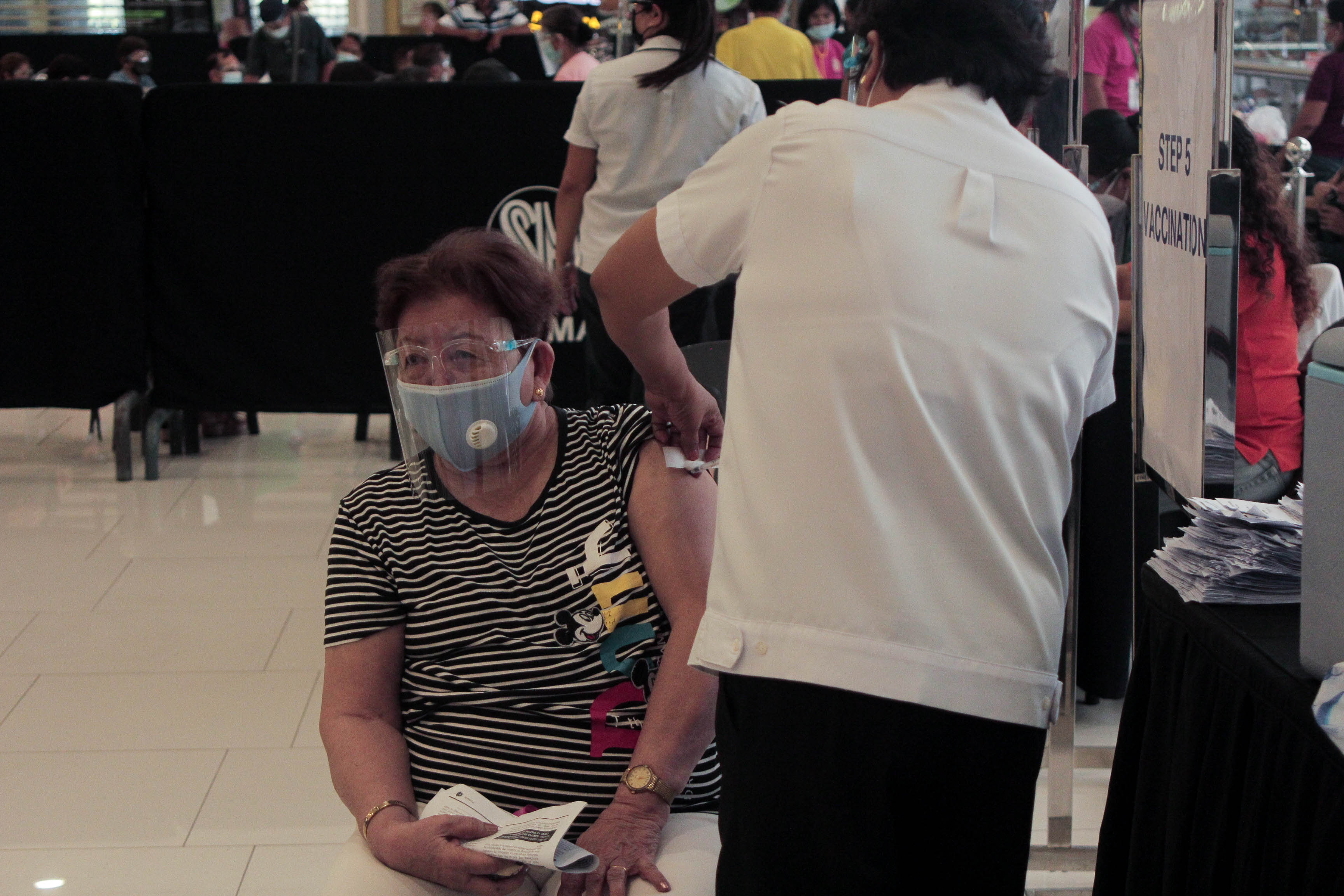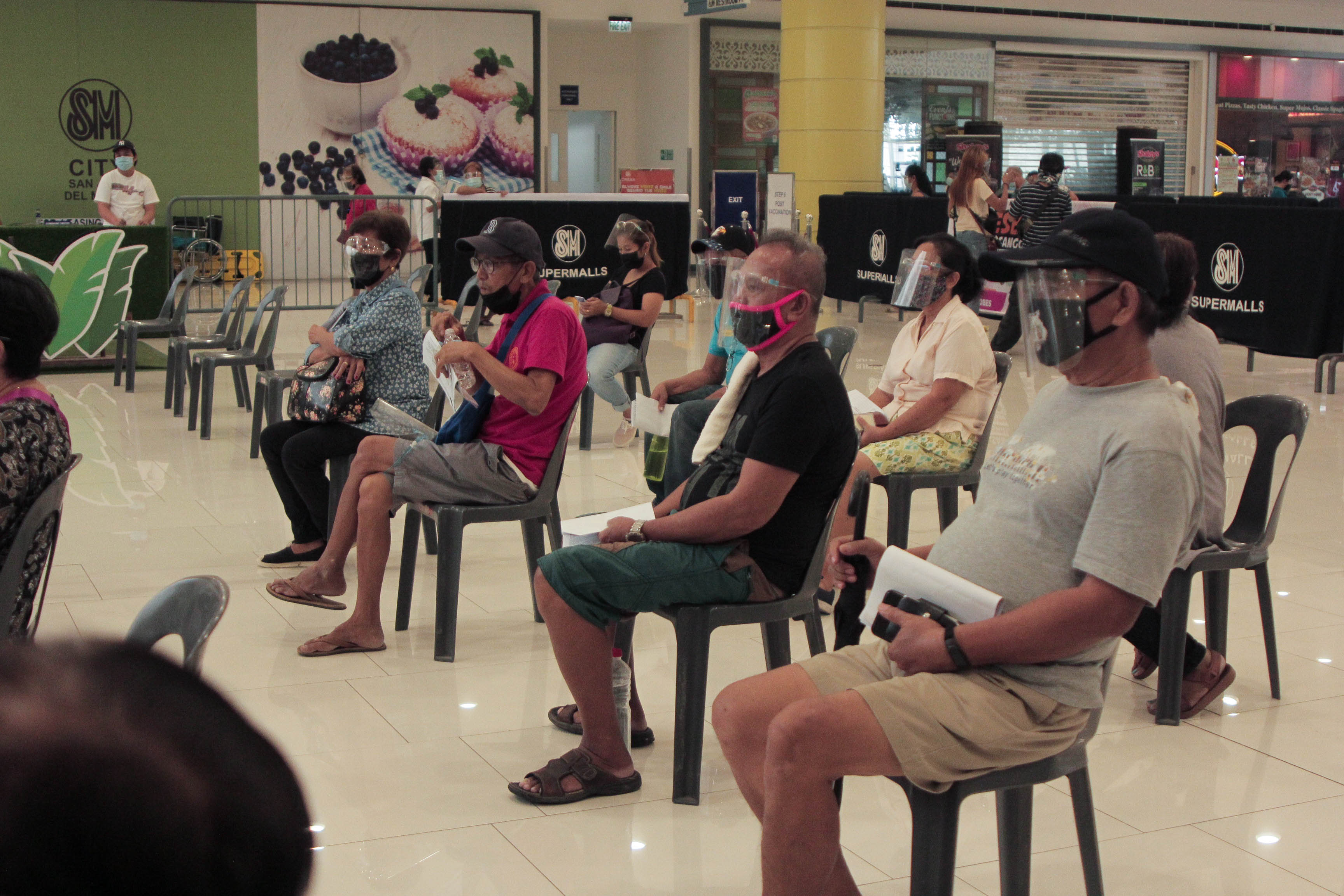 Some 400 senior citizens from various barangays in San Jose del Monte City in Bulacan get their first dose of Astrazeneca COVID-19 vaccine on May 17, 2021.