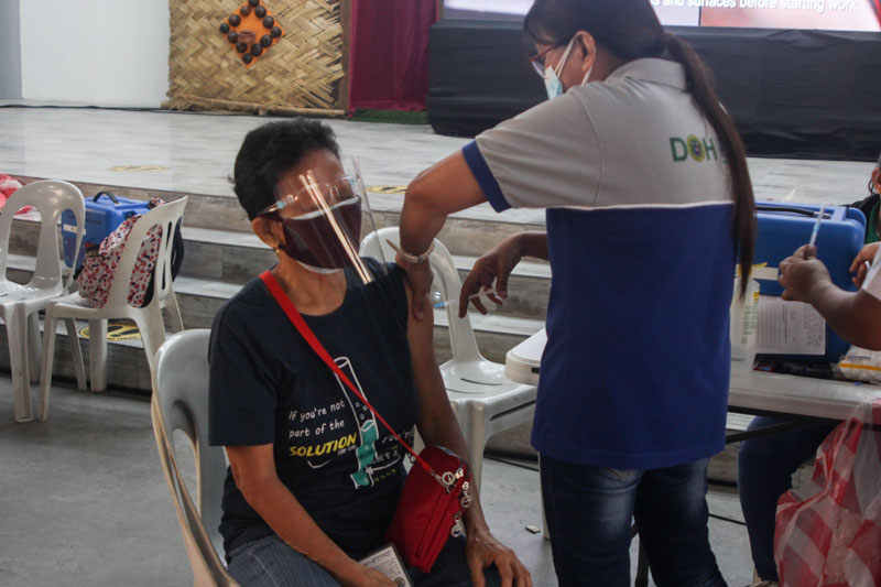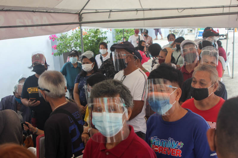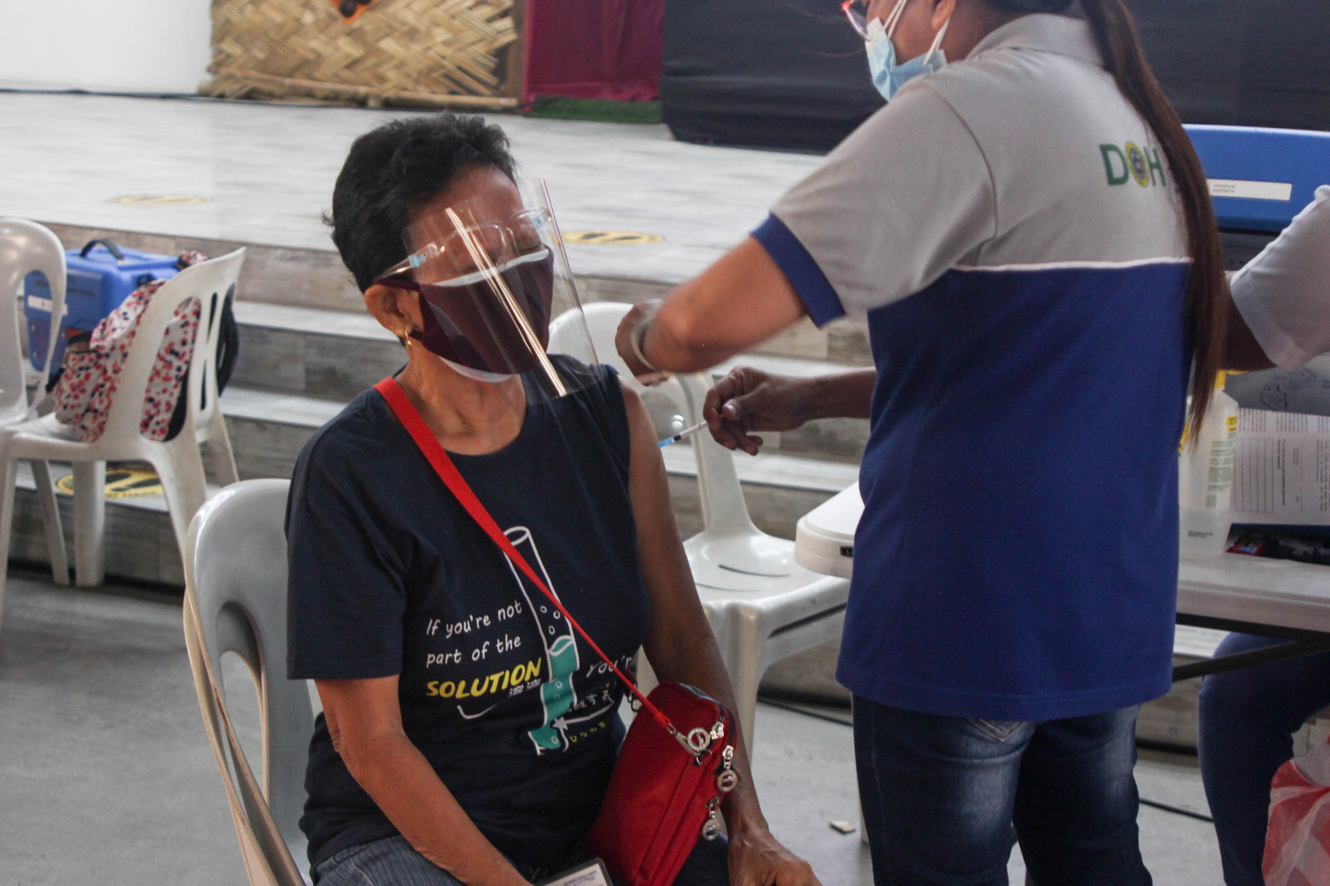 Over 1,000 residents and senior citizens gather for a scheduled Johnson & Johnson vaccination at the City Covered Court of San Jose Del Monte, Bulacan on July 26, 2021. Johnson & Johnson is the 6th brand of Covid-19 vaccine to arrive in Philippines.