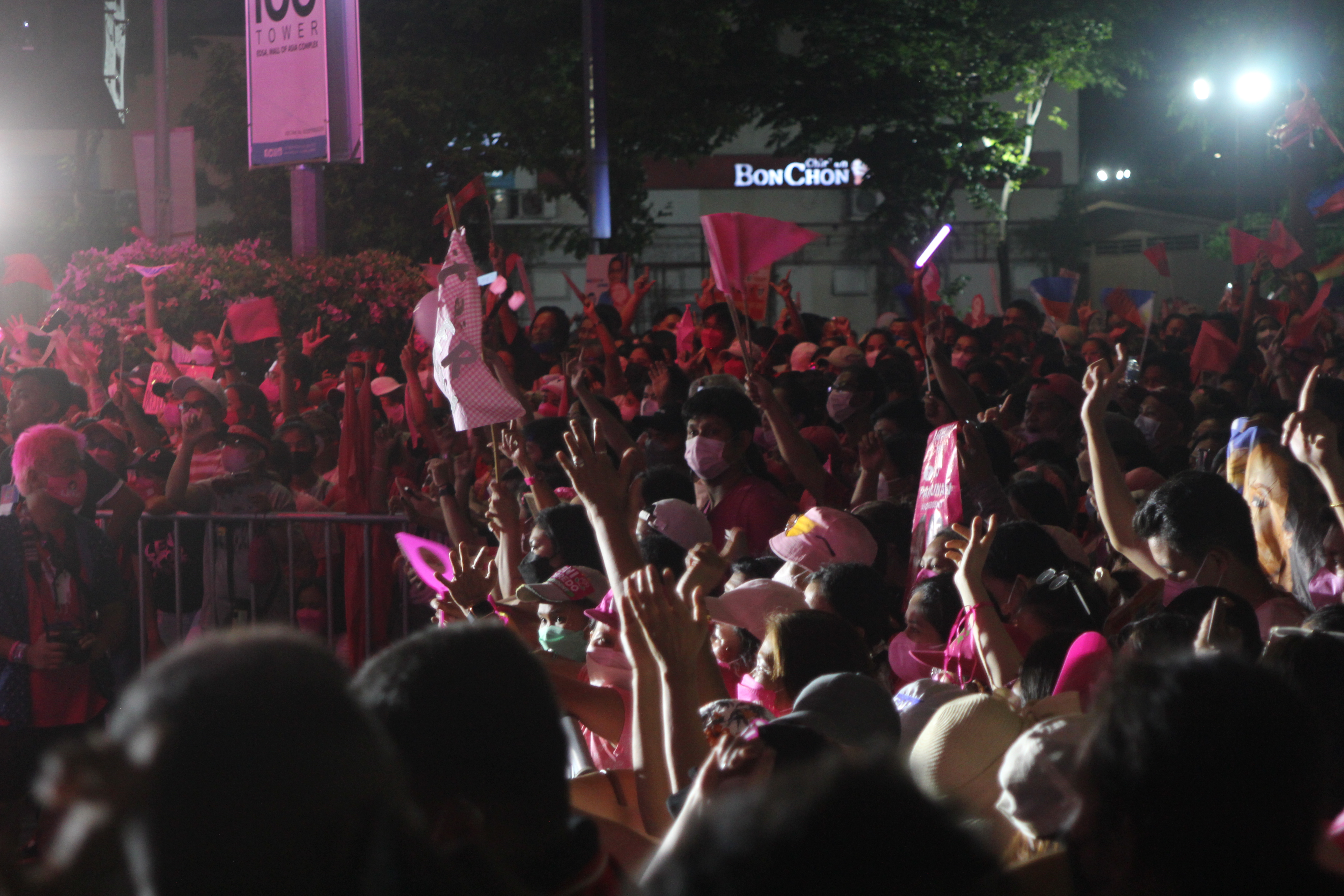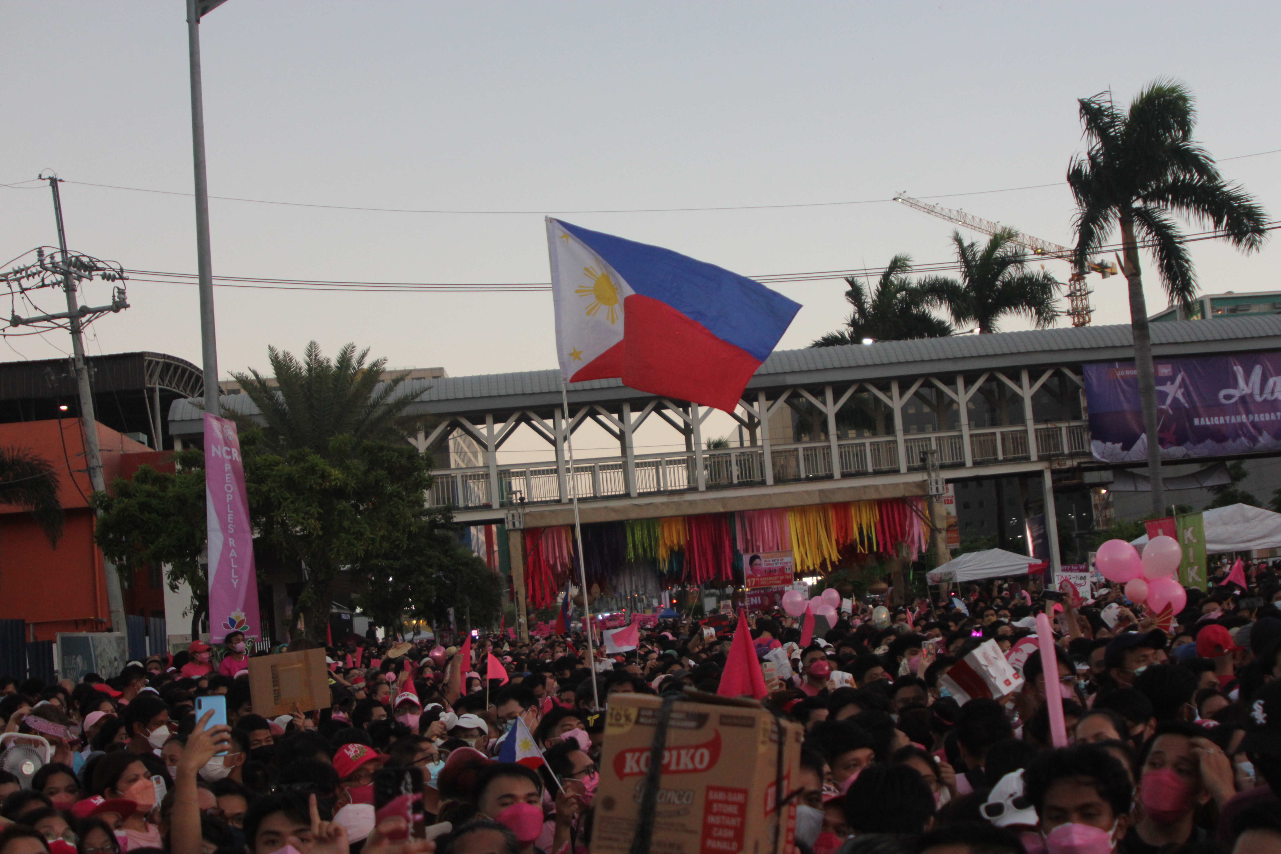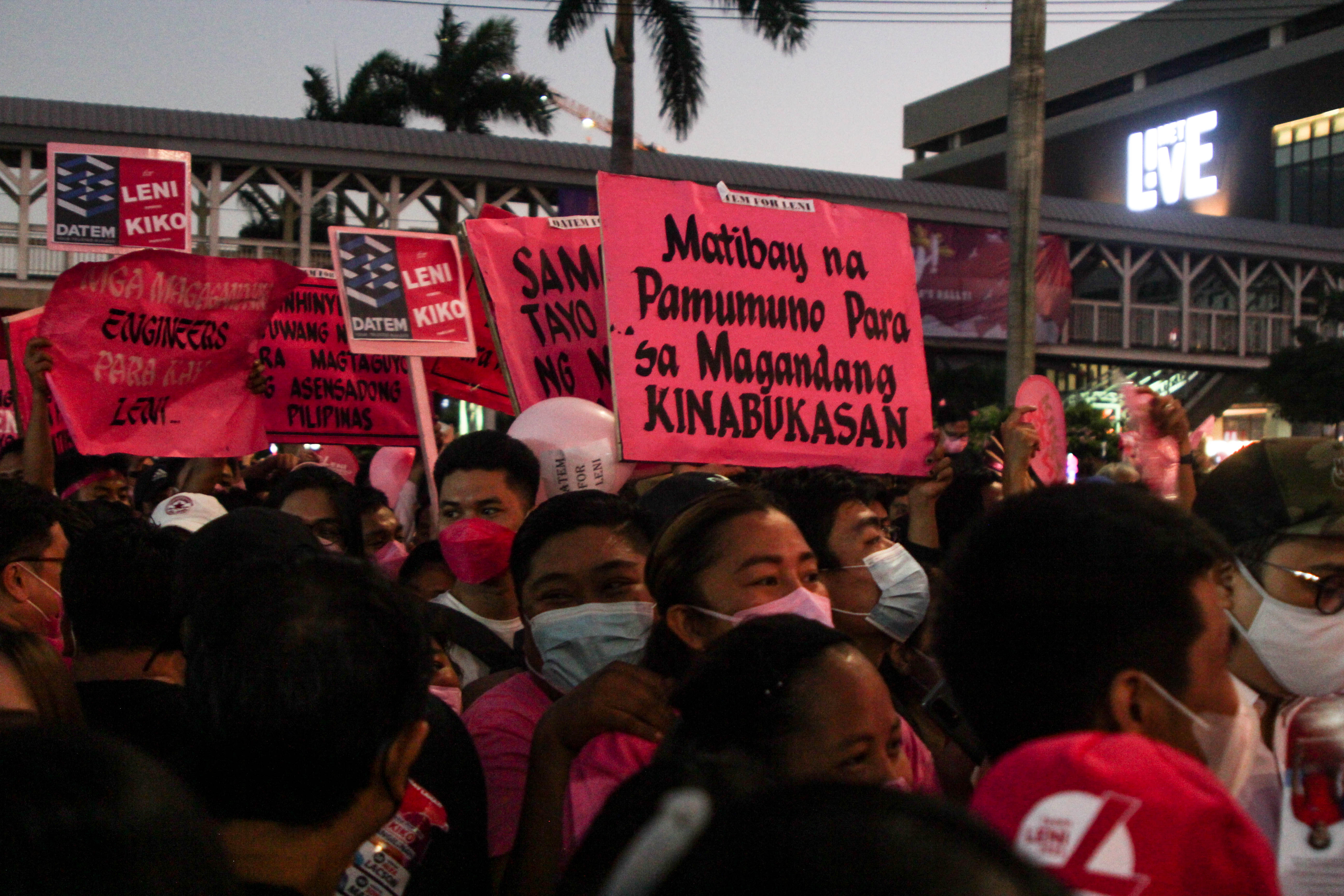 Thousands of people show support at the Birthday Grand rally of Vice President and hopeful Presidential Candidate Leni Robredo in Pasay City, Philippines on April 23, 2022. The huge crowd also bring their different placards and souvenirs for the Leni-Kiko Tandem.
