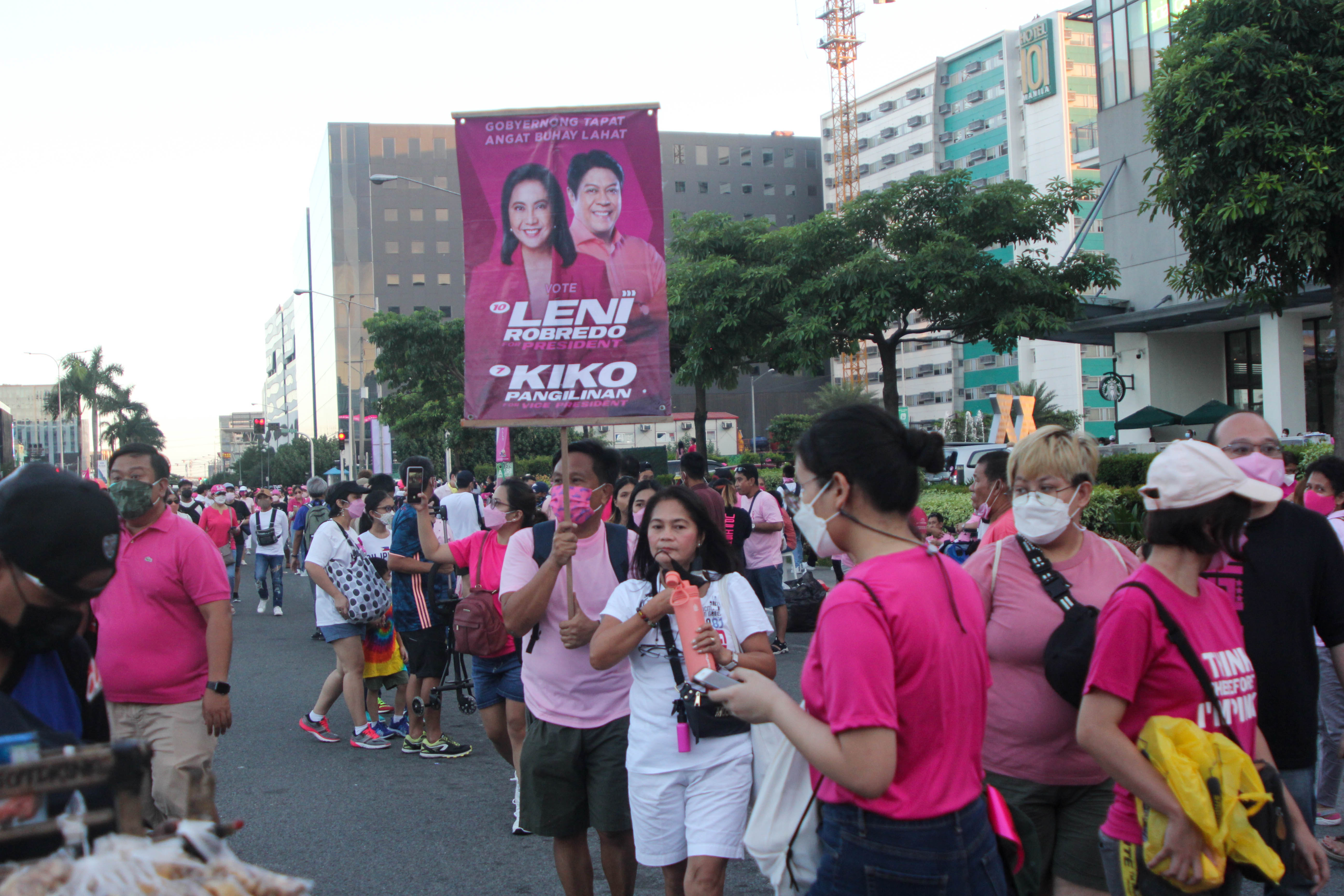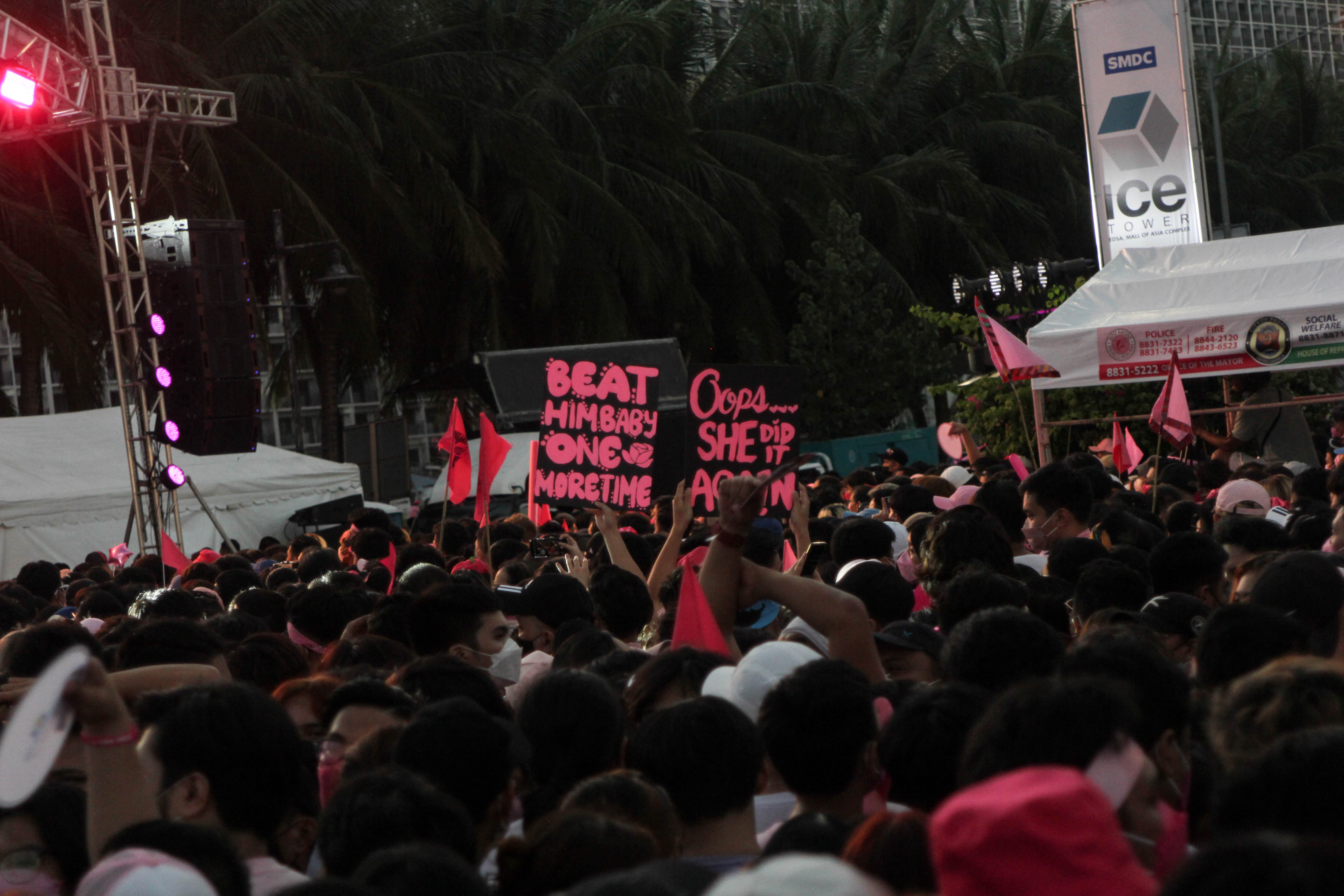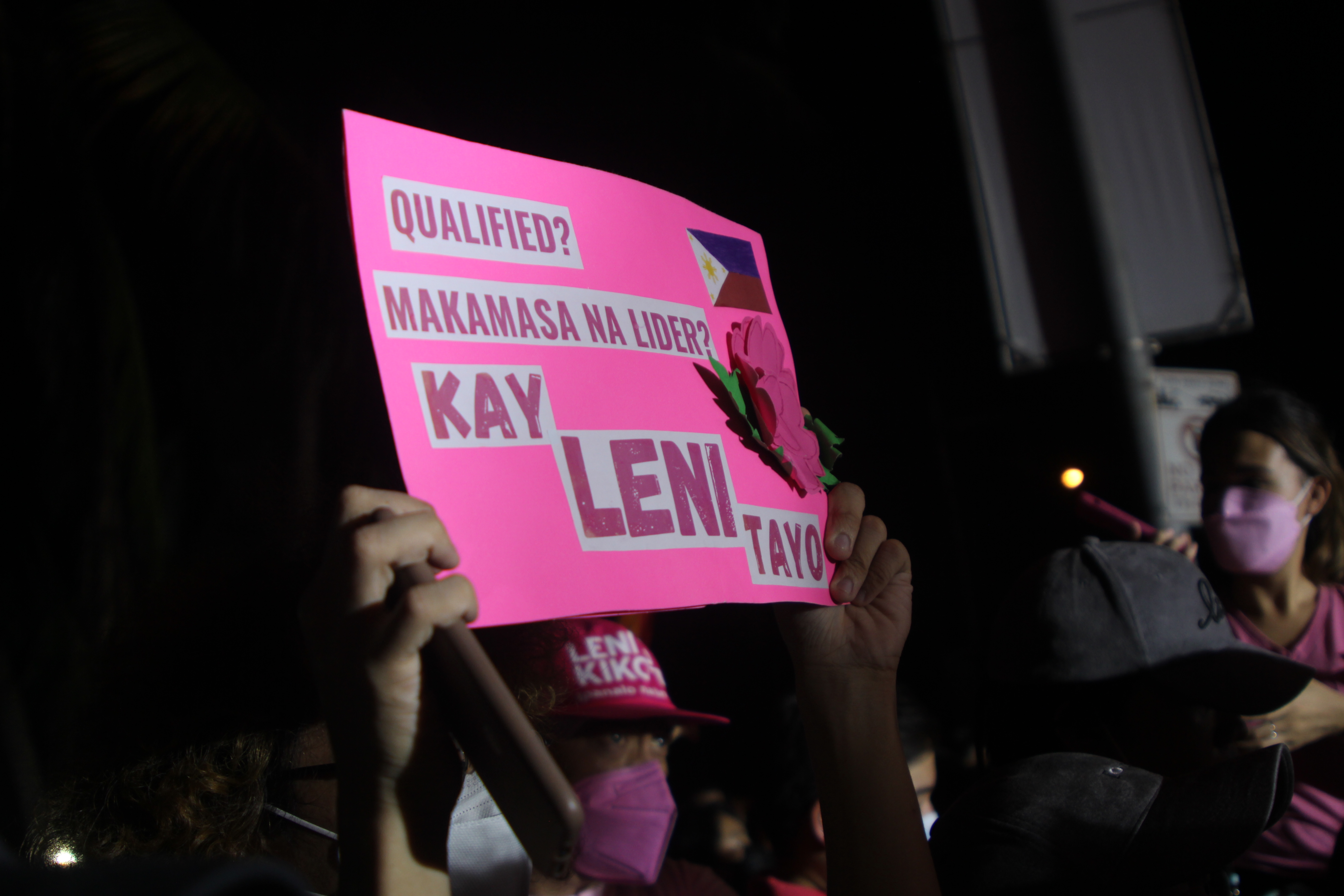 Thousands of people show support at the Birthday Grand rally of Vice President and hopeful Presidential Candidate Leni Robredo in Pasay City, Philippines on April 23, 2022. The huge crowd also bring their different placards and souvenirs for the Leni-Kiko Tandem.